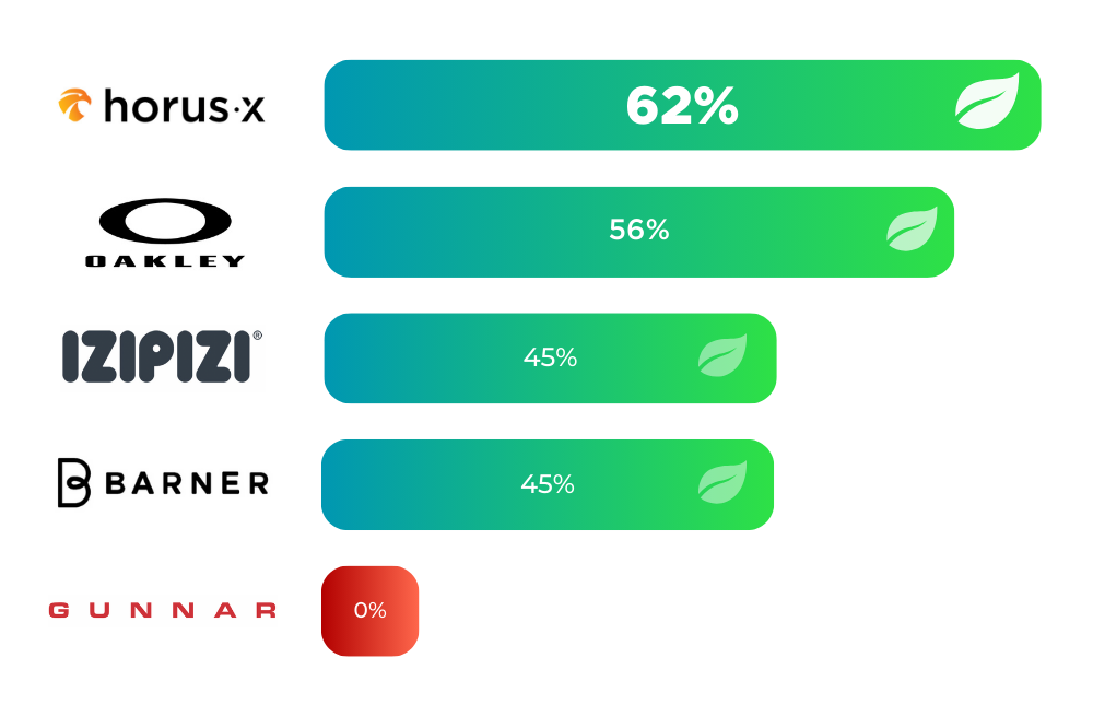 + de matériaux biosourcés dans la gamme BIOBASED Horus X® comparées aux lunettes des gammes biobased du marché