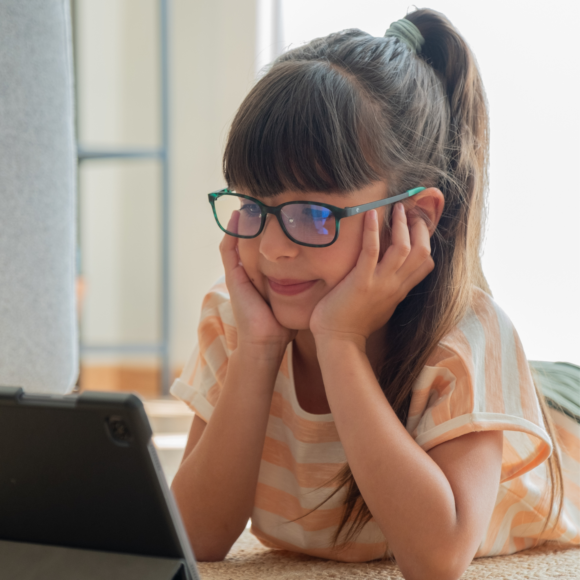 Une exposition prolongée des enfants aux écrans peut créer des troubles du sommeil ou générer de la fatigue visuelle. Nous savons qu’il est difficile de limiter cette exposition dans le monde actuel et c’est pourquoi nous avons imaginé ces lunettes qui filtrent 60% de la lumière bleue émise par les écrans sur le spectre nocif de 380nm à 450nm.