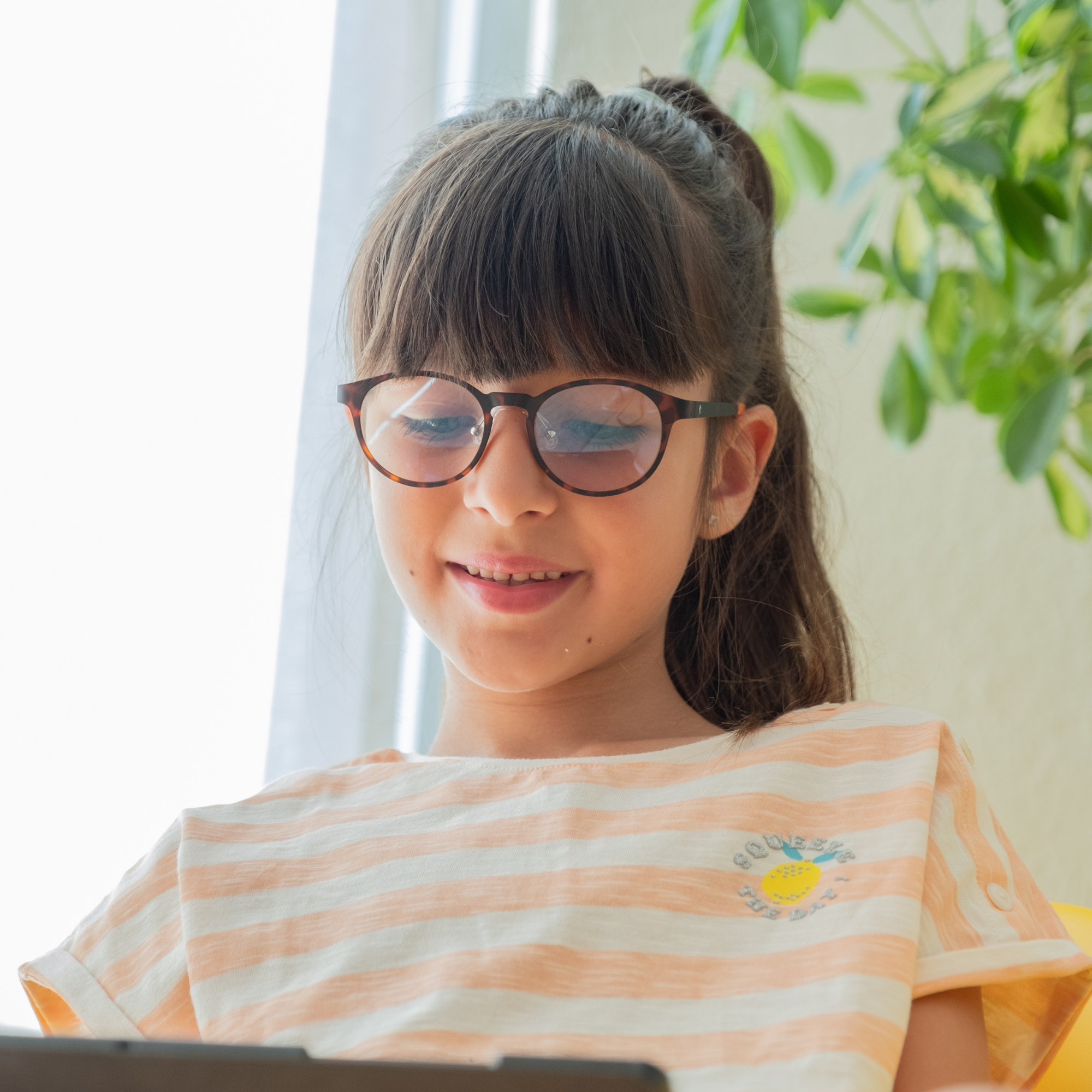 Une exposition prolongée des enfants aux écrans peut créer des troubles du sommeil ou générer de la fatigue visuelle. Nous savons qu’il est difficile de limiter cette exposition dans le monde actuel et c’est pourquoi nous avons imaginé ces lunettes qui filtrent 60% de la lumière bleue émise par les écrans sur le spectre nocif de 380nm à 450nm, les plus puissantes de leur catégorie.
