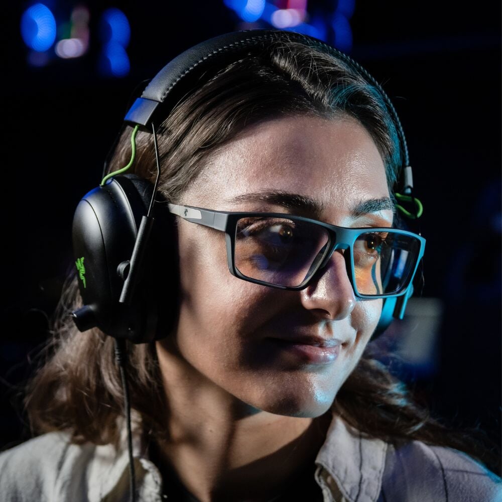 Lunettes pour gamer équipées des branches ajustables en alliage signature Horus X, l'évolution de notre lunette Gaming One offre un confort supérieur optimisé pour le port du casque.
