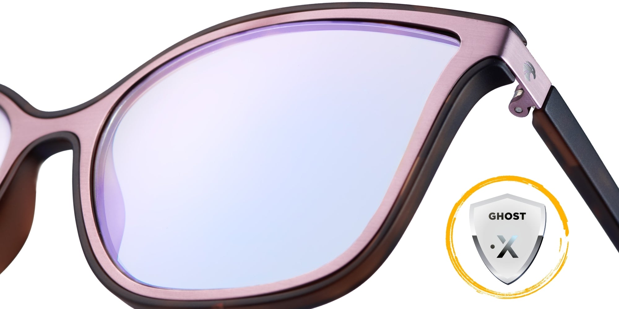 Cette monture pour femme revisite le charme indémodable des lunettes papillon en y ajoutant une touche de modernité. La fusion innovante du polycarbonate et du métal brossé crée un design unique, tout en conservant le large champ de vision de ce modèle oversize emblématique. La technologie brevetée Ghost® filtre efficacement la lumière bleue pour un confort visuel optimal.