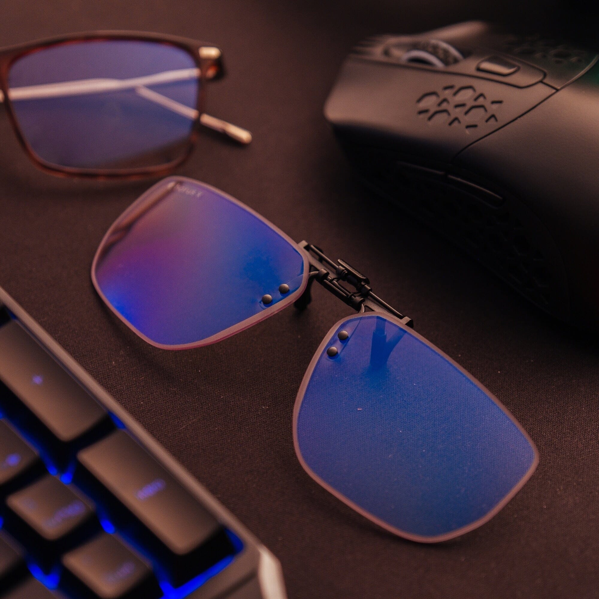 Surlunette anti lumière bleue ultra puissante. Le clip anti lumière bleue, arme de protection massive pour un usage intense.