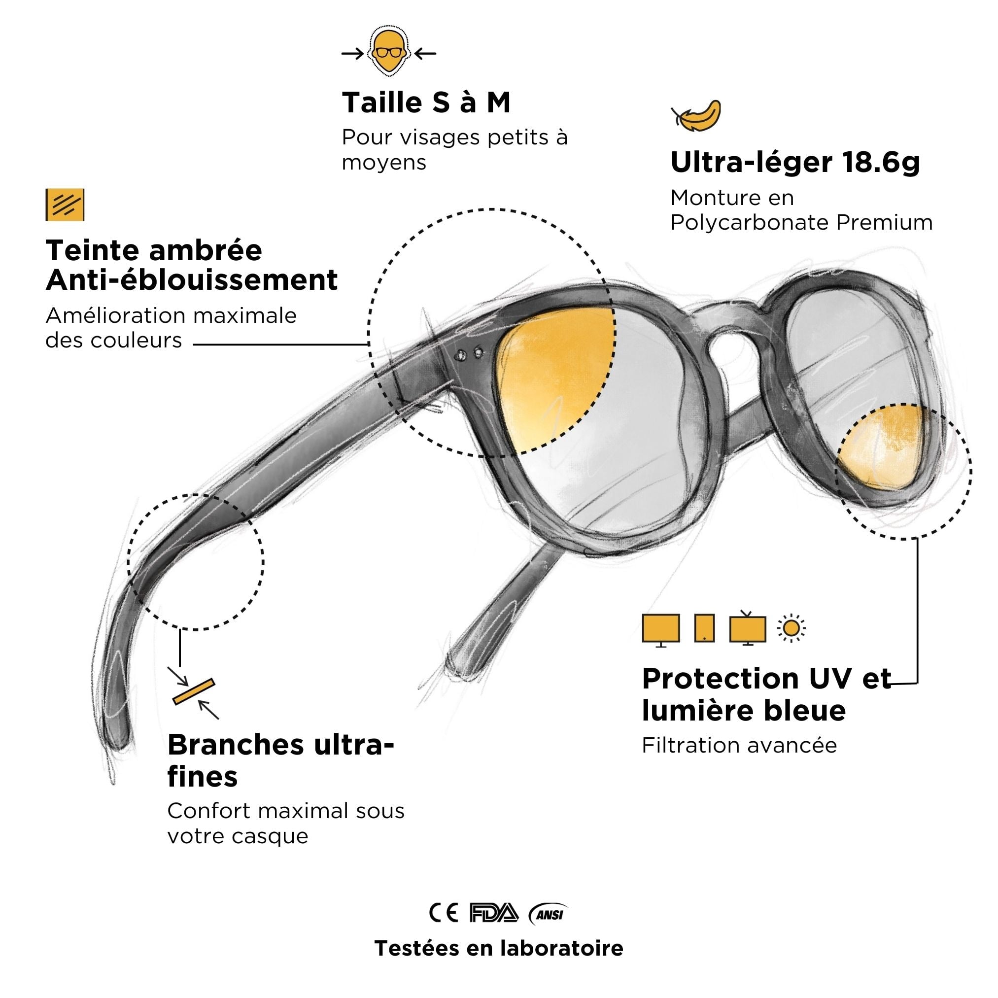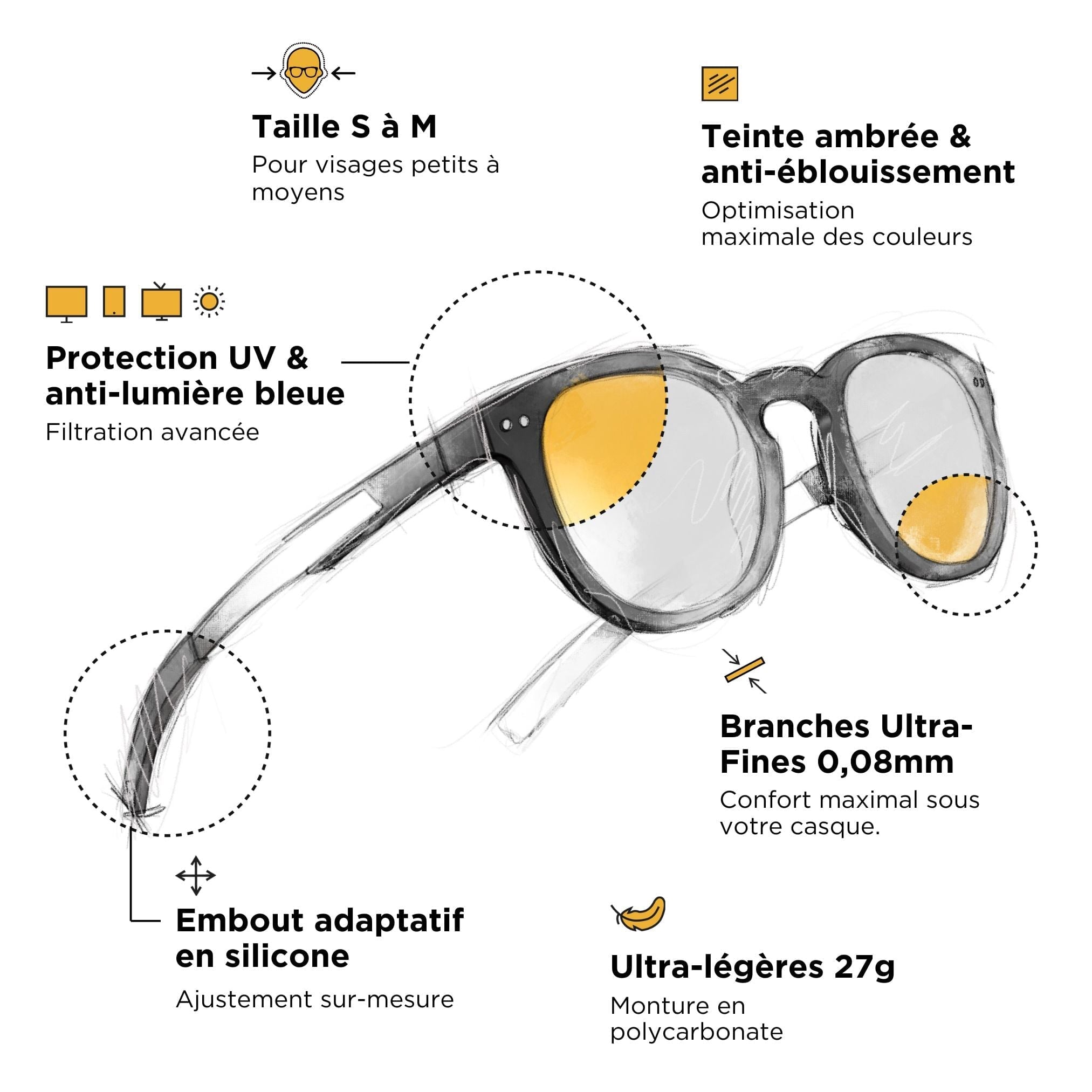 - 1 paire de lunettes gaming rondes URBAN (Unisexe) ou 2 paires si choix du pack (1 clair + 1 ambrée)