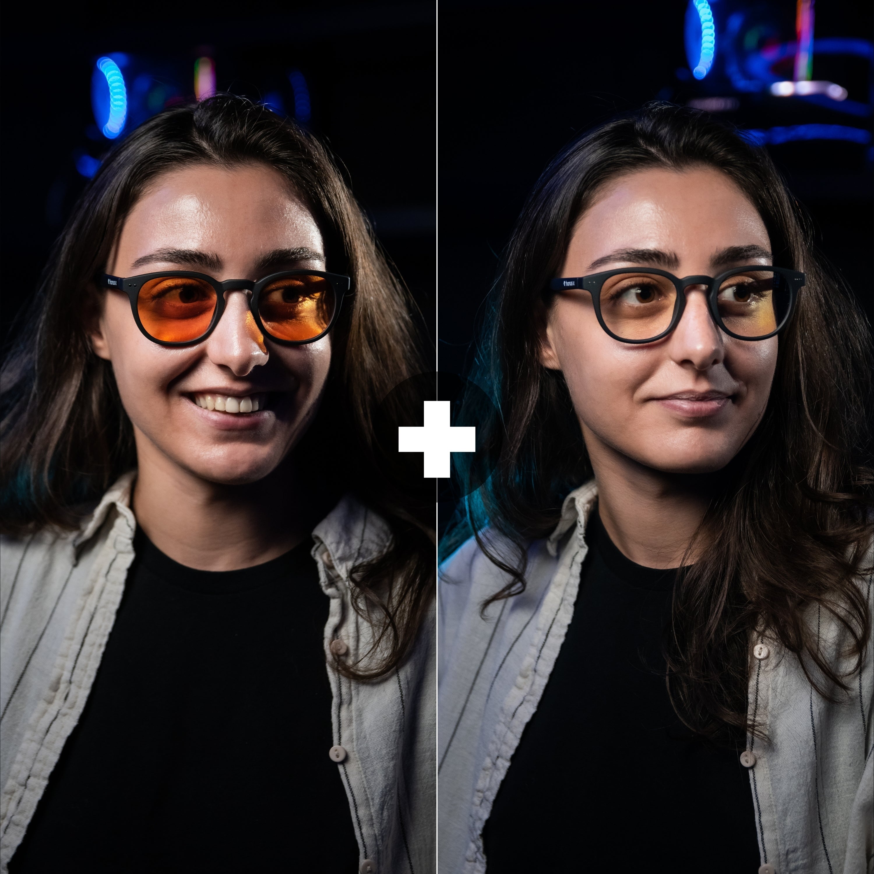 Une exposition prolongée aux écrans peut créer des troubles du sommeil ou générer de la fatigue visuelle. Finis les baisses de régime avec ces lunettes gaming anti lumière bleue aux courbes arrondies, conçues spécialement pour le jeu vidéo. Equipées du meilleur filtre pour écran du marché (anti UV, anti lumière bleue, anti reflets, anti mauvais goût)