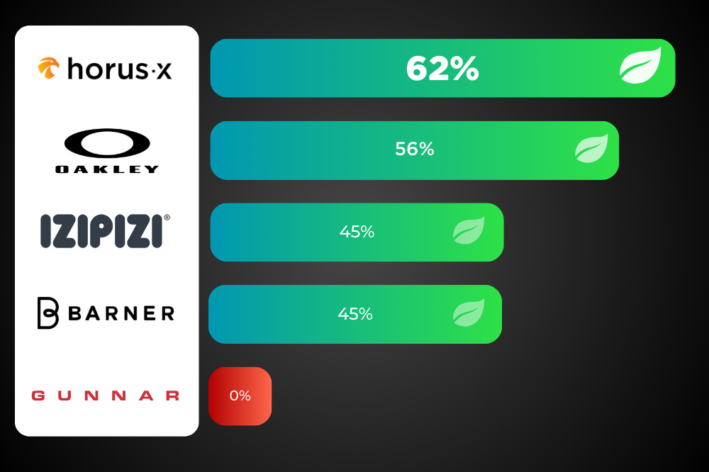 + de matériaux biosourcés dans la gamme BIOBASED Horus X®, comparées aux lunettes des gammes biobased du marché