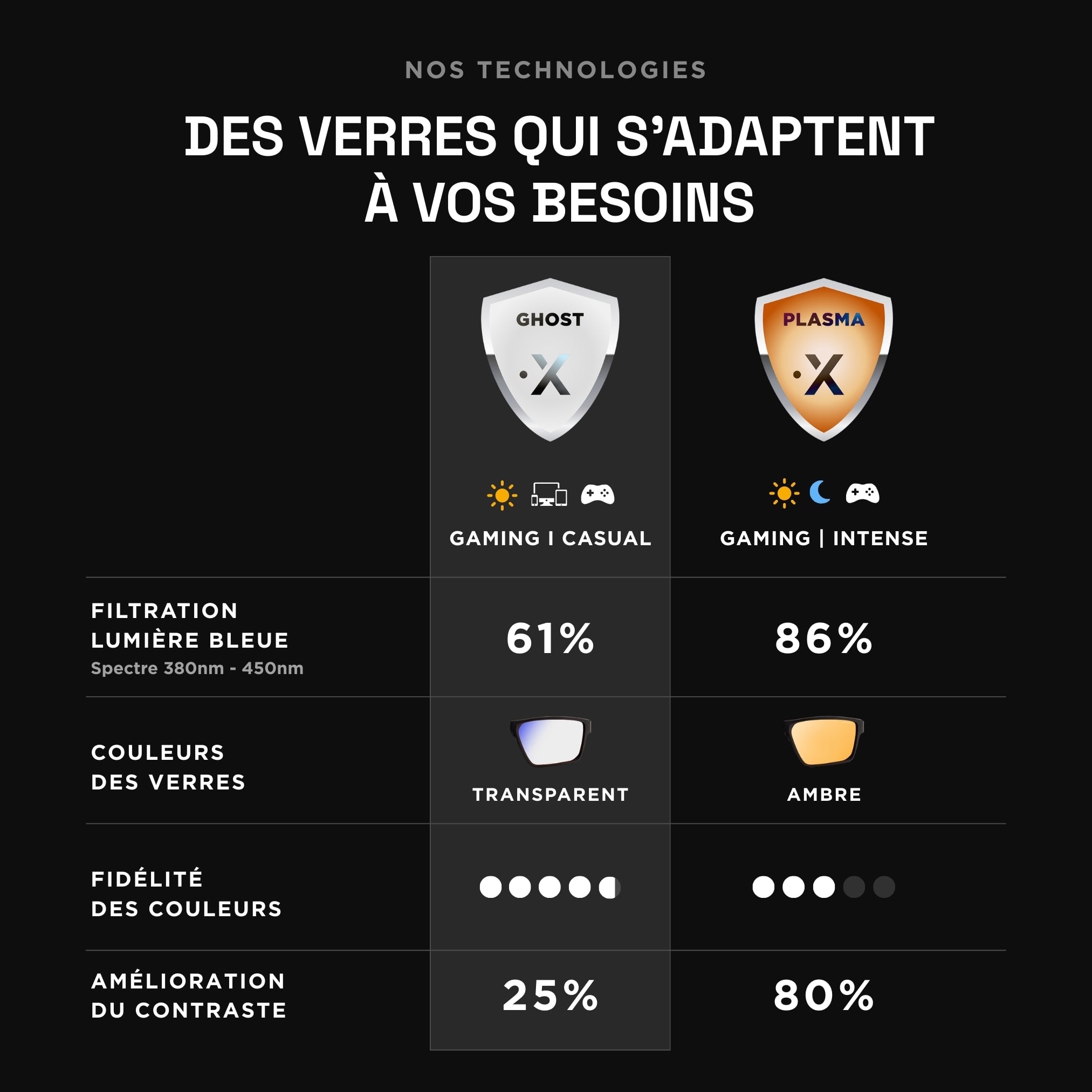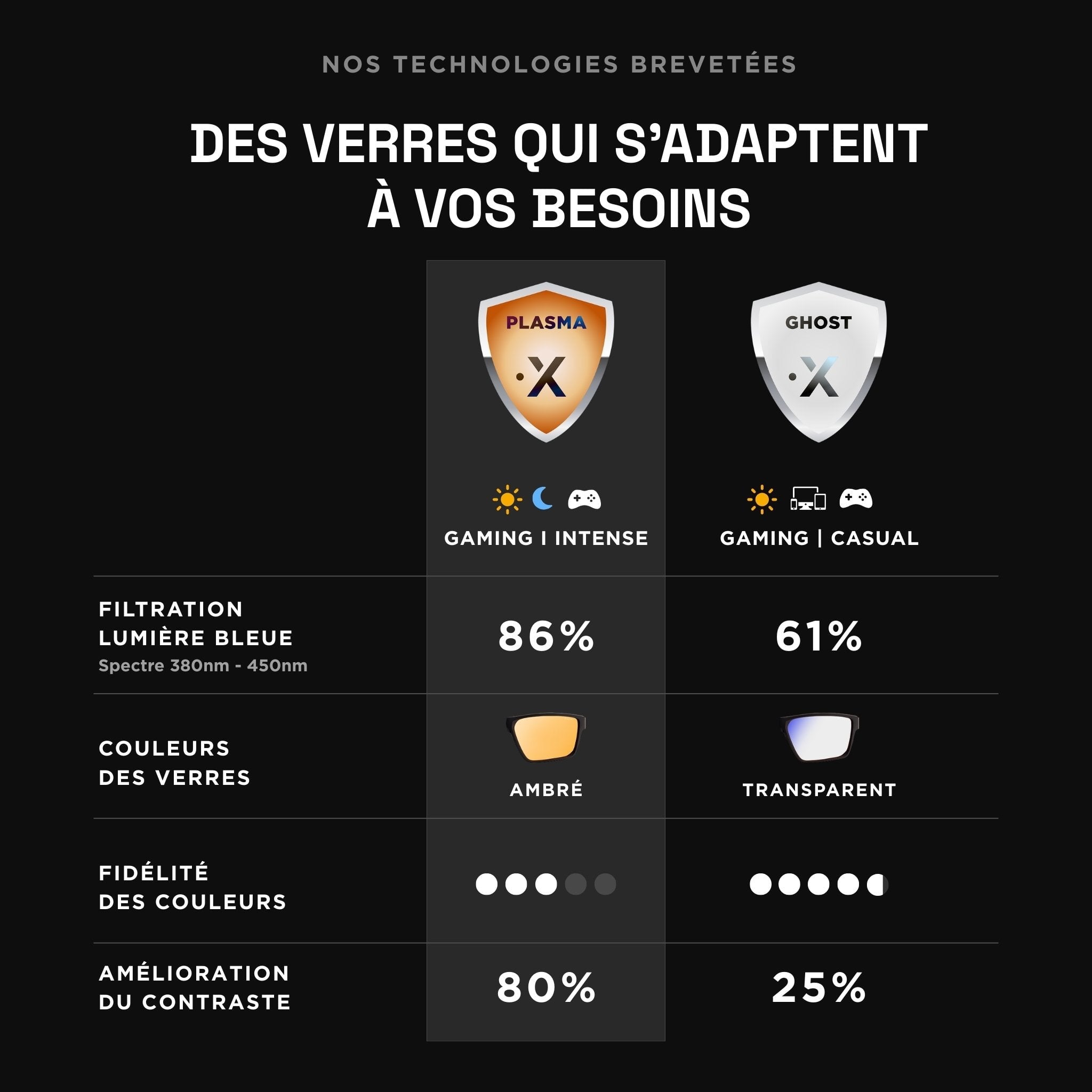Équipées des technologies de protection des écrans les plus évoluées du marché : anti UV, anti lumière bleue, anti reflets.